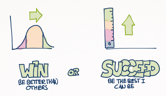Think about it… what is motivating you to perform well at work or in sports? Do you want to be better than the rest? Or do you want to be the best you can be? In other words: do you want to win from others, or from yourself?