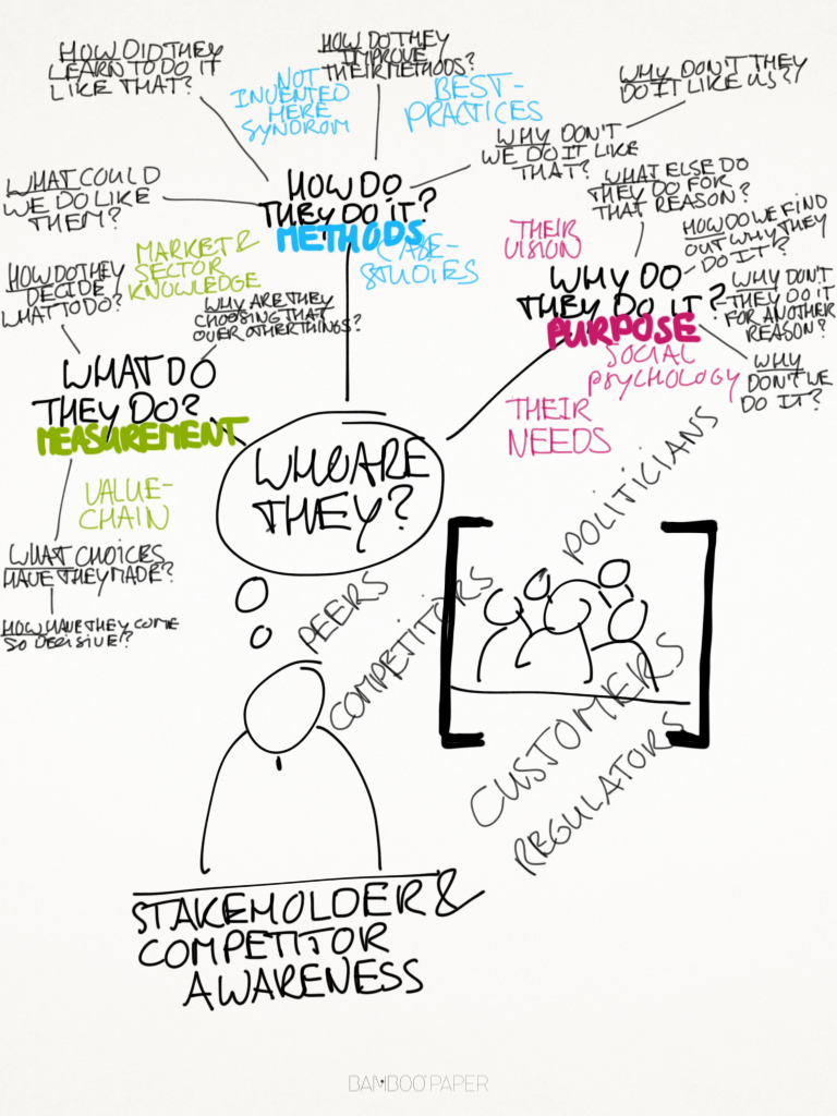 After having had a good look at who we are (post: who are we?), I think it’s time to start looking over the hedge to what others are doing (or being). From an organisational point of view, you could call “them” stakeholders (when they have an interest in your company), or competitors (if you’re competing for the same purpose…?), and from a personal perspective it could be strangers, anybody, or nobody.