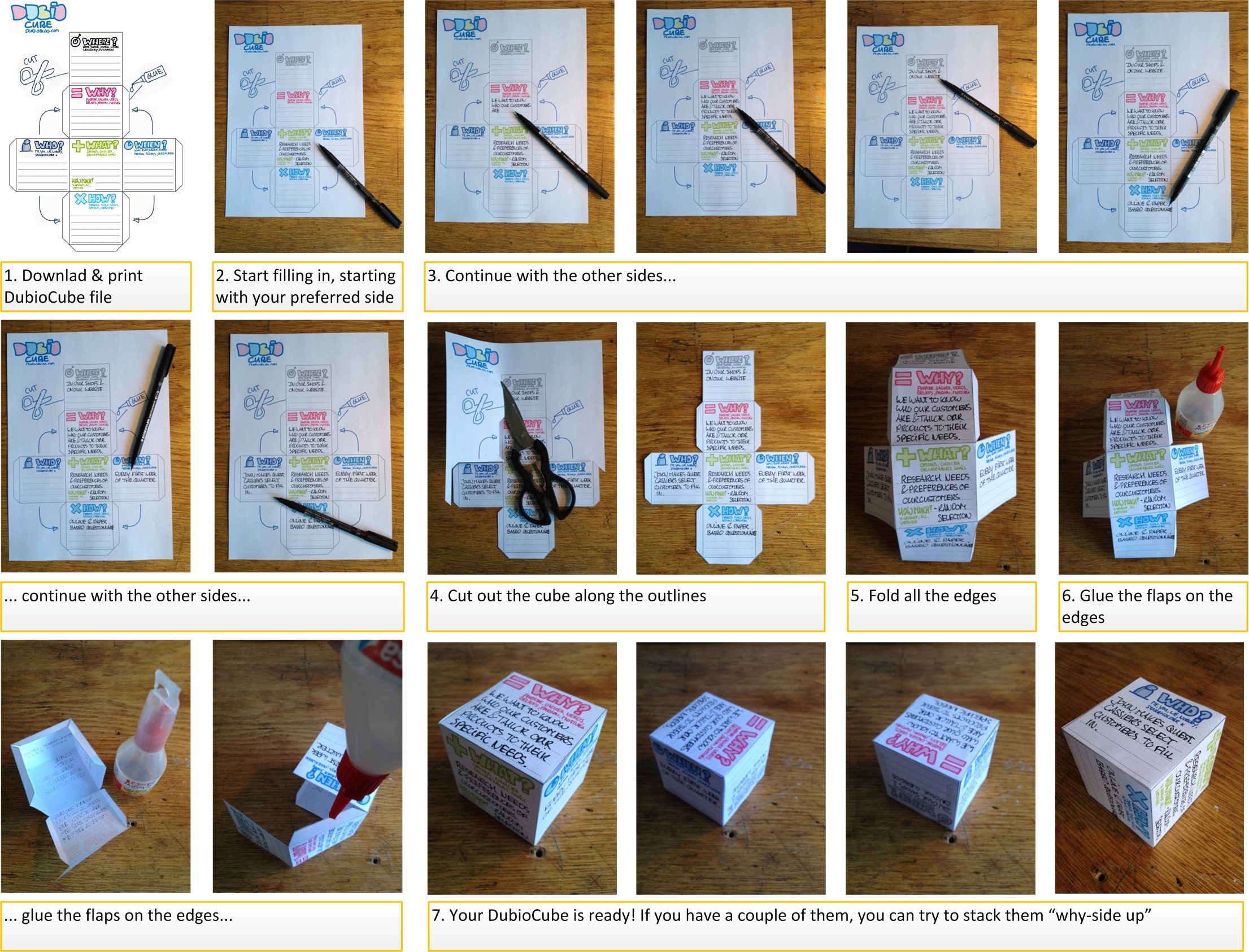 - The first step is to download & print a dubio-cube (or a couple of them, say 5 per person).